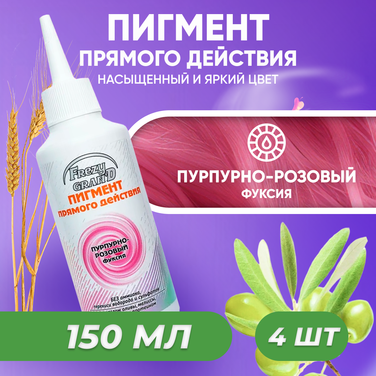Пигмент прямого действия Frezy Grand для волос Пурпурно-розовый Фуксия 150 мл 4 шт информация: