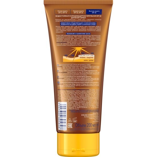 Eveline Cosmetics Eveline Cosmetics Солнцезащитная водостойкая эмульсия SPF 30, 200 мл информация: