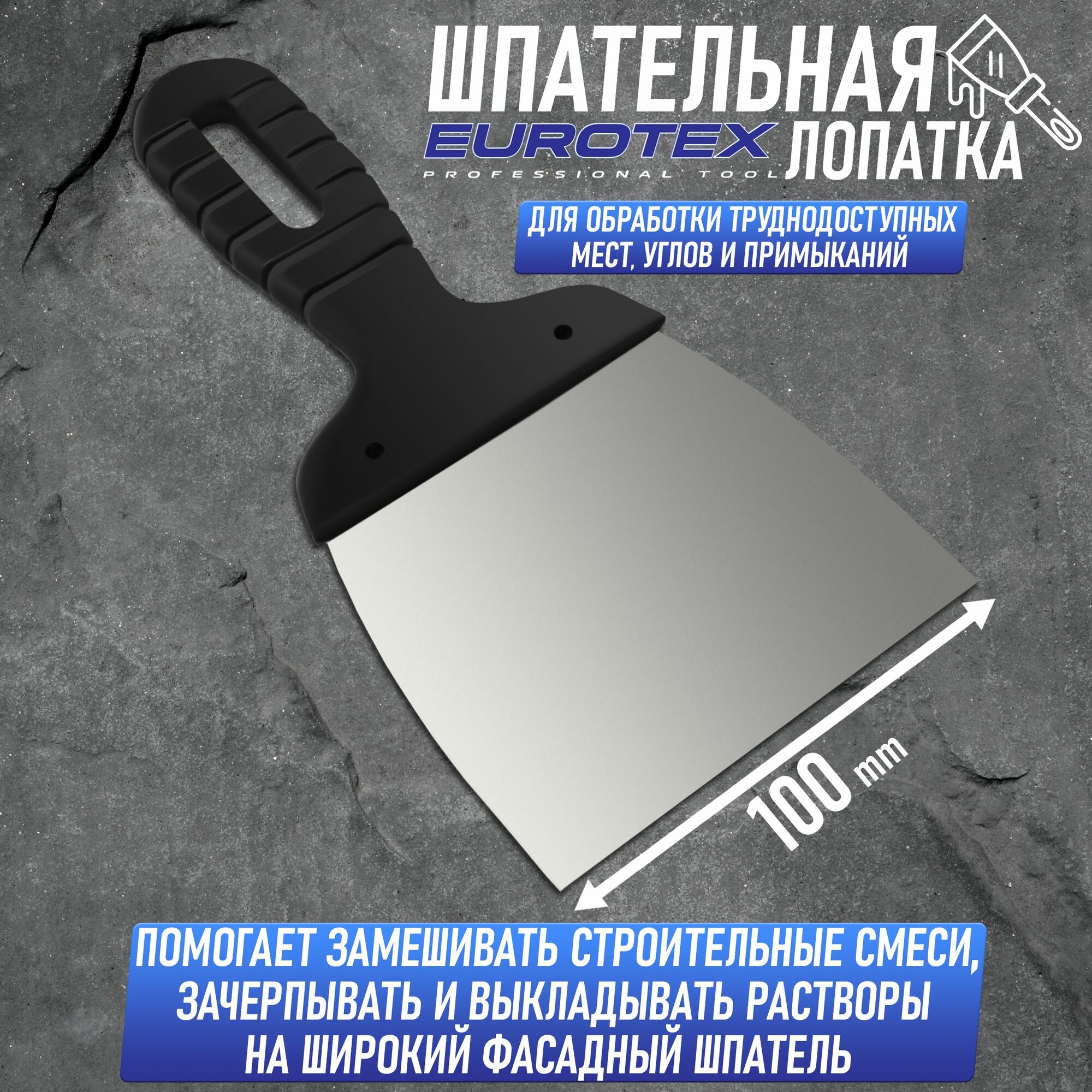 Шпатель фасадный строительный EUROTEX нержавеющая сталь, пластмассовая ручка (100 мм) информация: