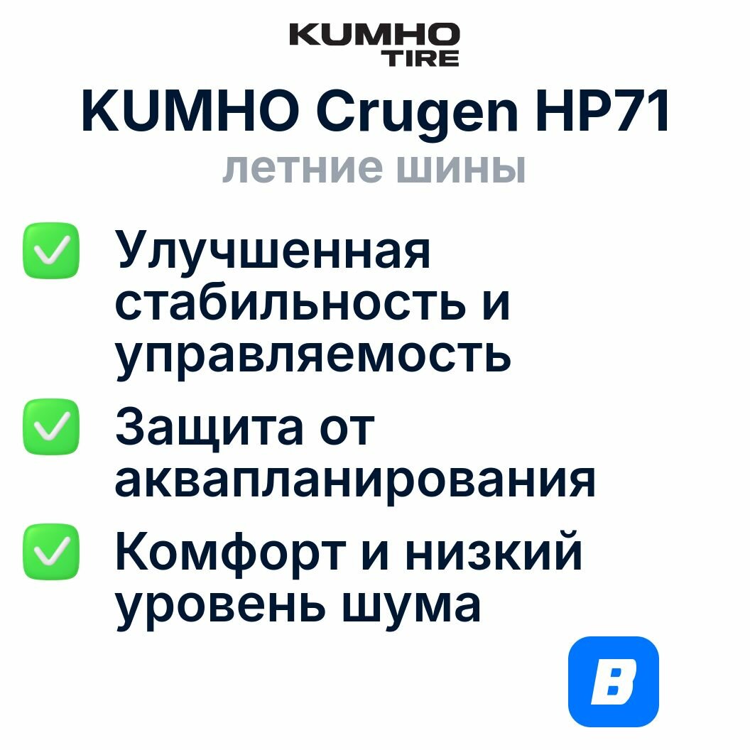 Шина летняя легковая KUMHO HP-71 235/50R18 97V (Арт.2230223) 11 260 ₽