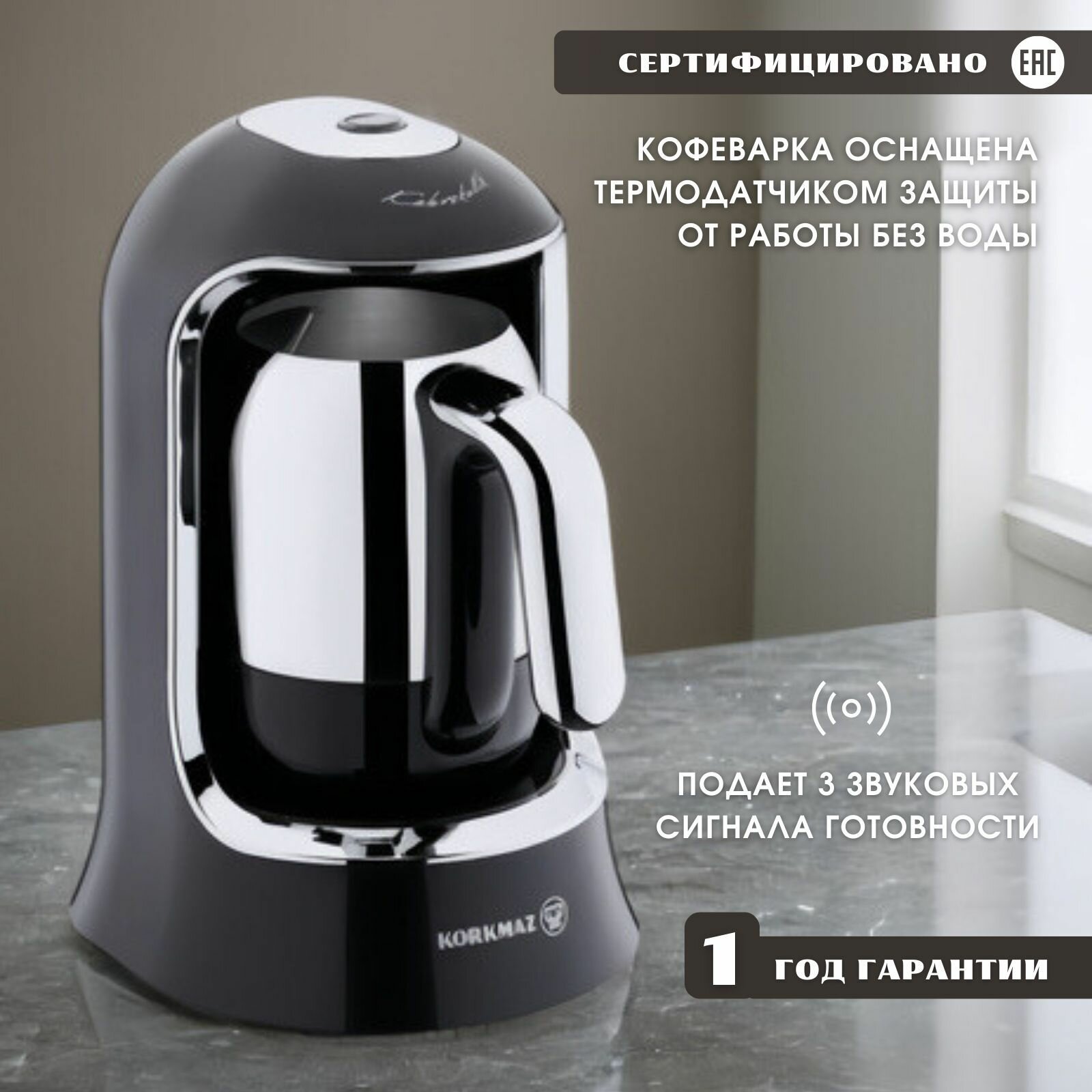 10 цен на Кофеварка электрическая, кофемашина, турка для кофе, 280мл, Korkmaz Kahvekolik, 400W с автоотключением, черный