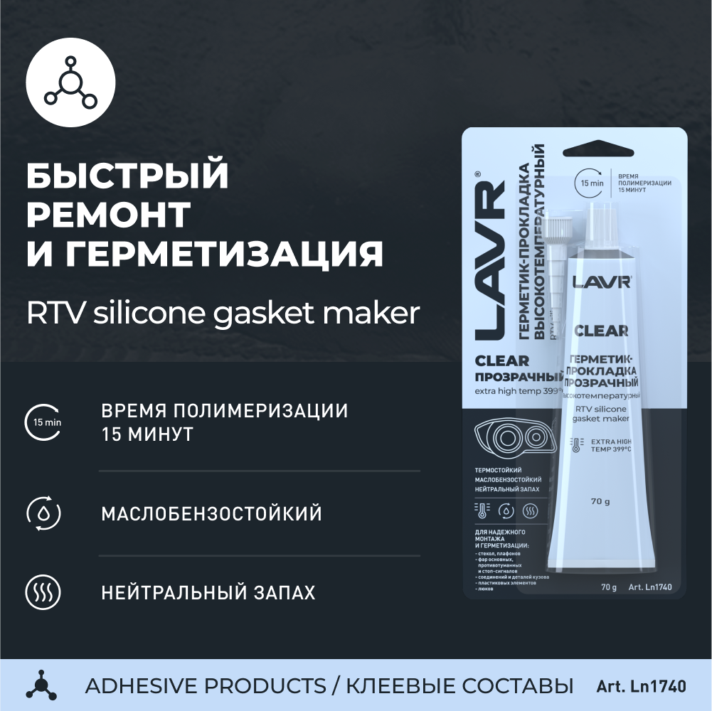 Отзывы на Герметик-прокладка прозрачный высокотемпературный Clear LAVR, 70г. Ln1740
