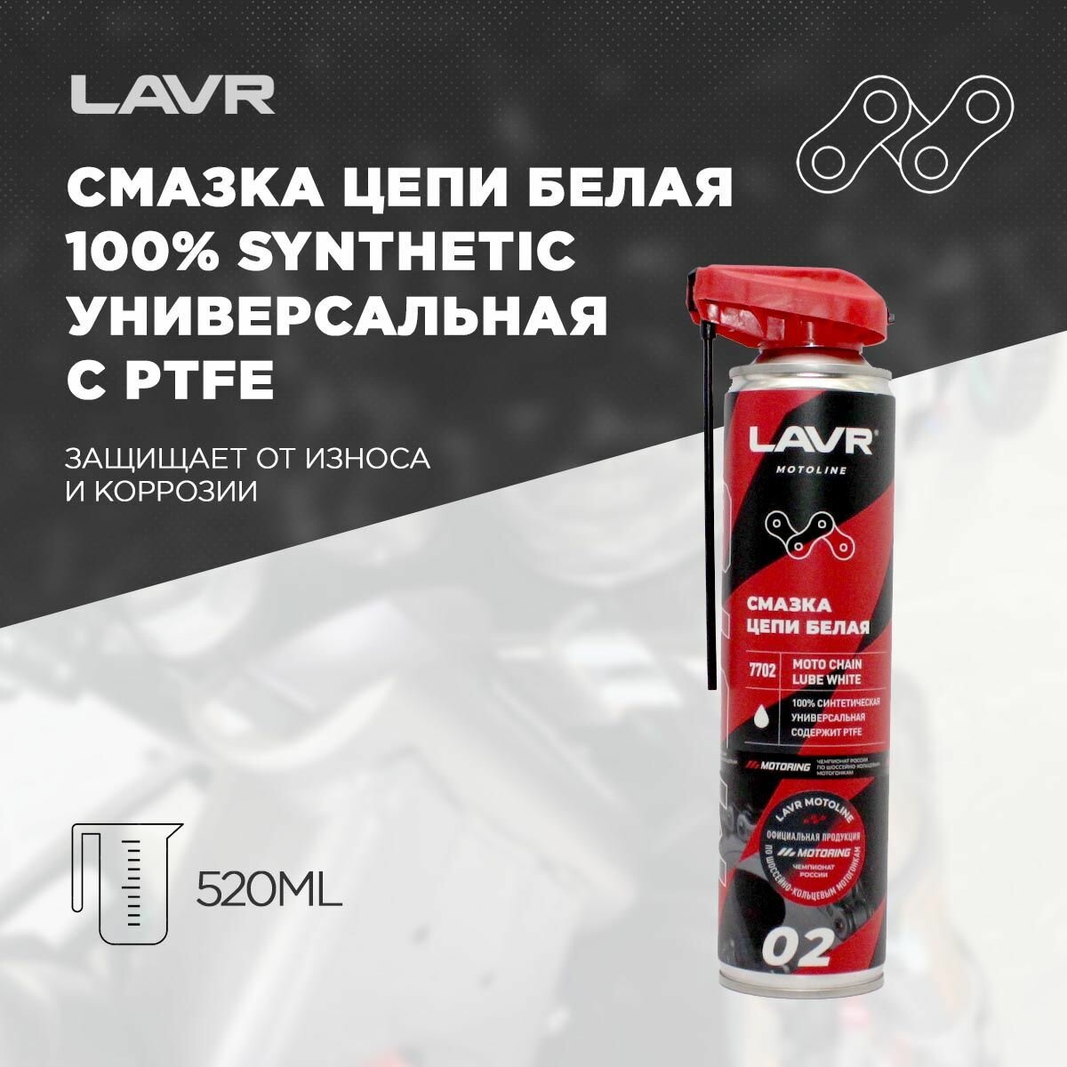 Смазка цепи Белая, 520 мл LAVR Moto Line Ln7702 информация:
