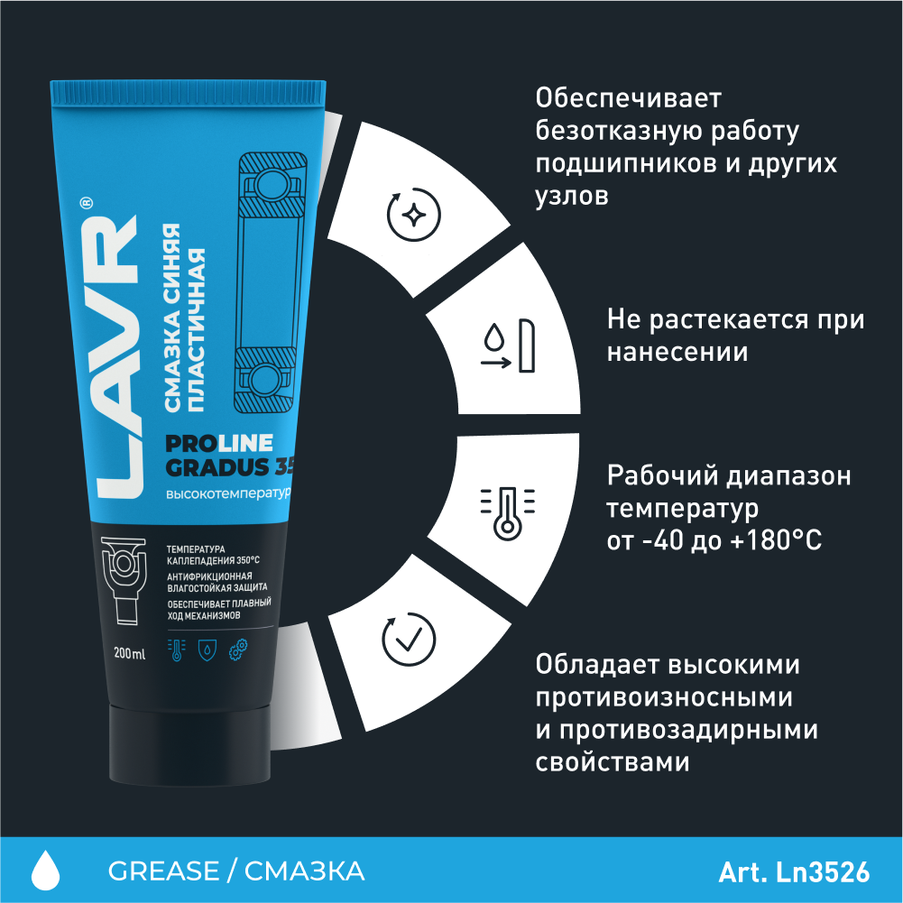 Lavr Смазка Высокотемпературная Синяя Gradus 350 Proline, 200 Мл LAVR арт. LN3526 950 ₽