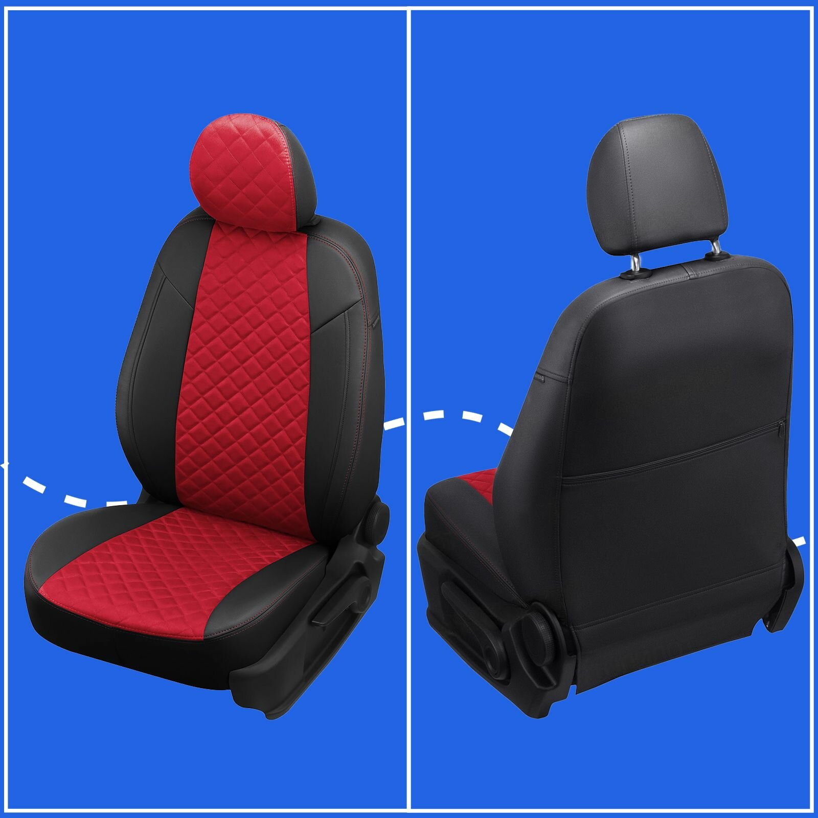 Комплект чехлов Автопилот Ромб Renault Fluence (40/60) с 09-17г. / Megane III 10-16г Черный + Красная строчка