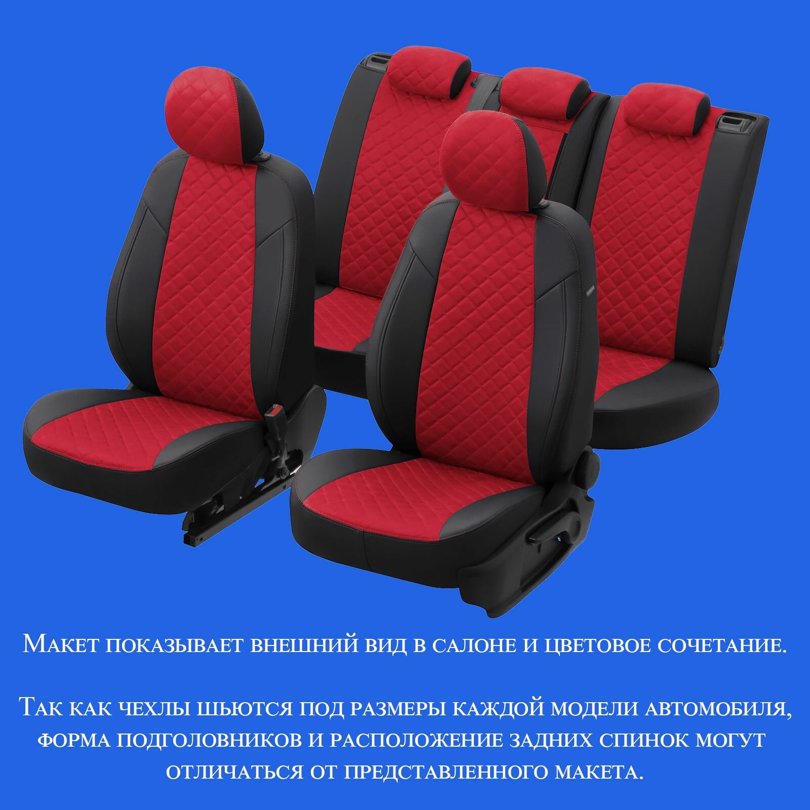 Комплект чехлов Автопилот Алькантара ромб Renault Fluence (40/60) с 09-17г. / Megane III с 10-16г Черный + Красный
