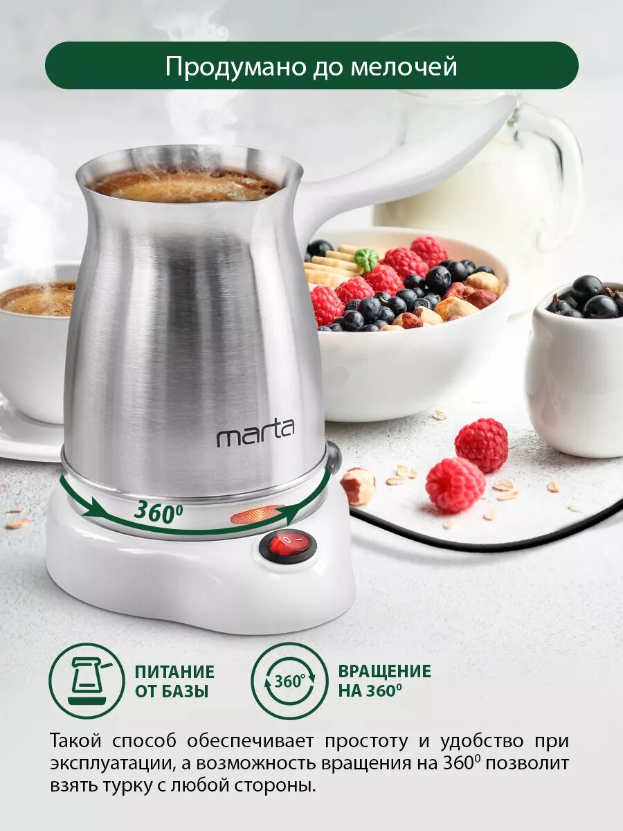 Электрическая турка MARTA MT-2143 бордовый гранат 400 Вт объем 500 мл корпус сталь съемная кр
