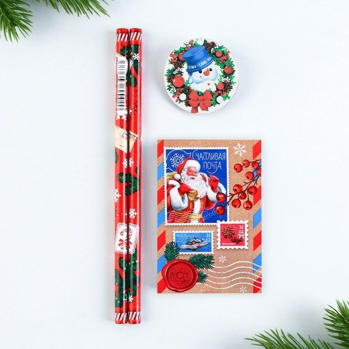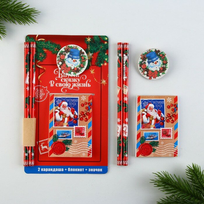 10 цен на Новый год. Набор блокнот, карандаши ч/г 2 шт и значок «Впусти сказку в свою жизнь»