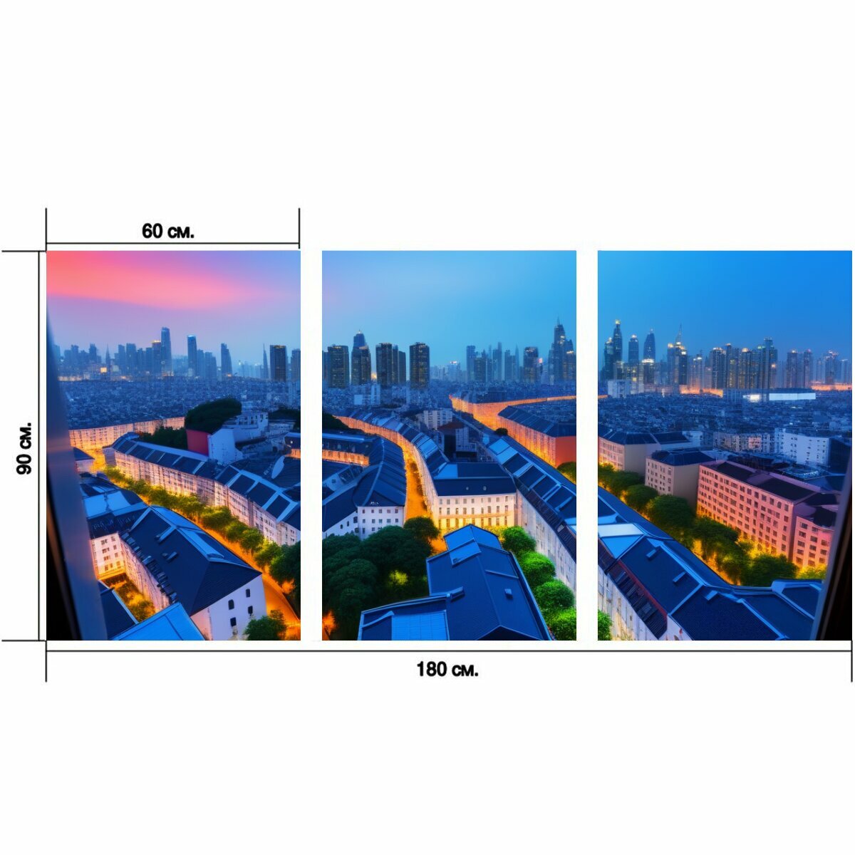 10 цен на Модульный постер в кафе "Ритмы города, вид из окна , " 180 x 90 см. для интерьера на стену