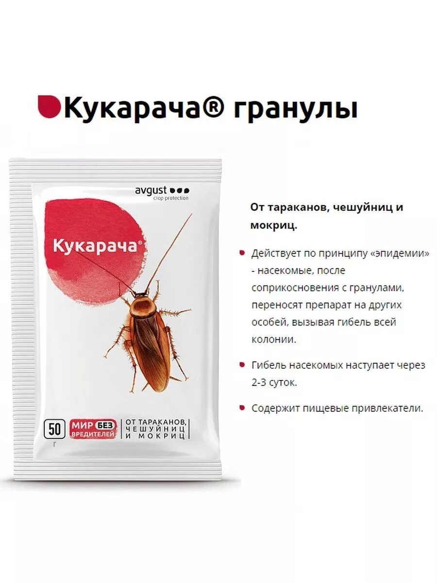Август Средство от тараканов Кукарача, гранулы, 50 г