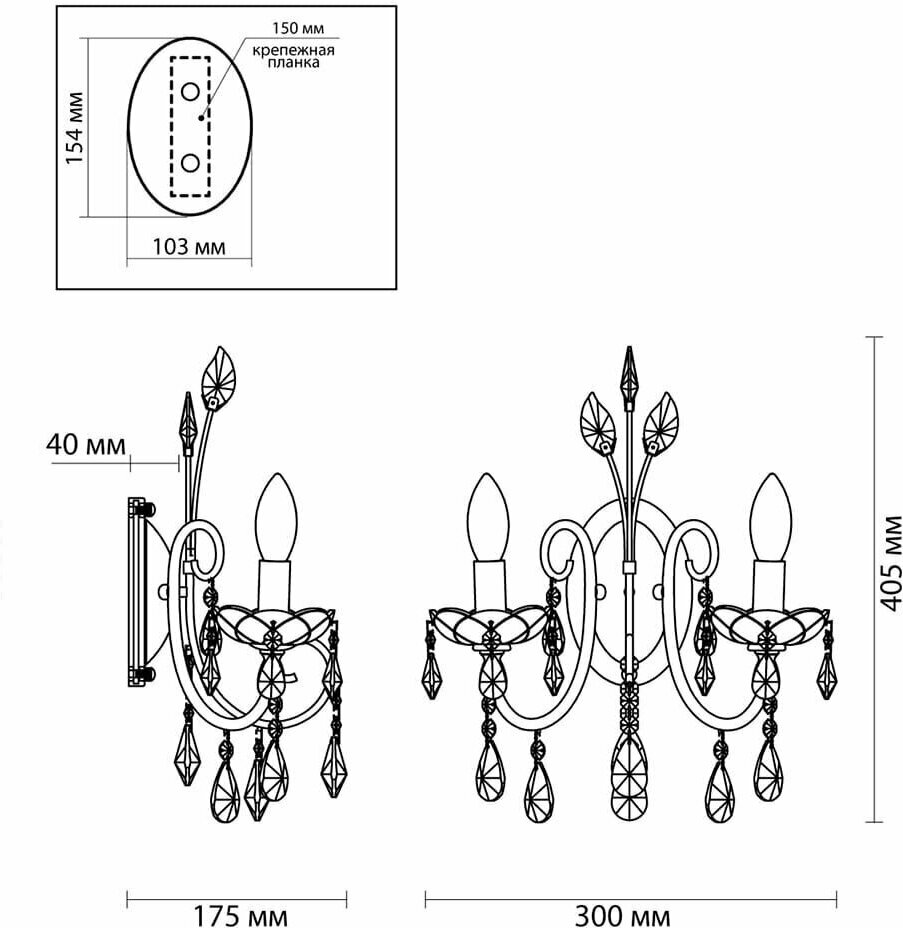 4985/2W HALL ODL22 543 хром/хрусталь Бра E14 2*40W DAKISA