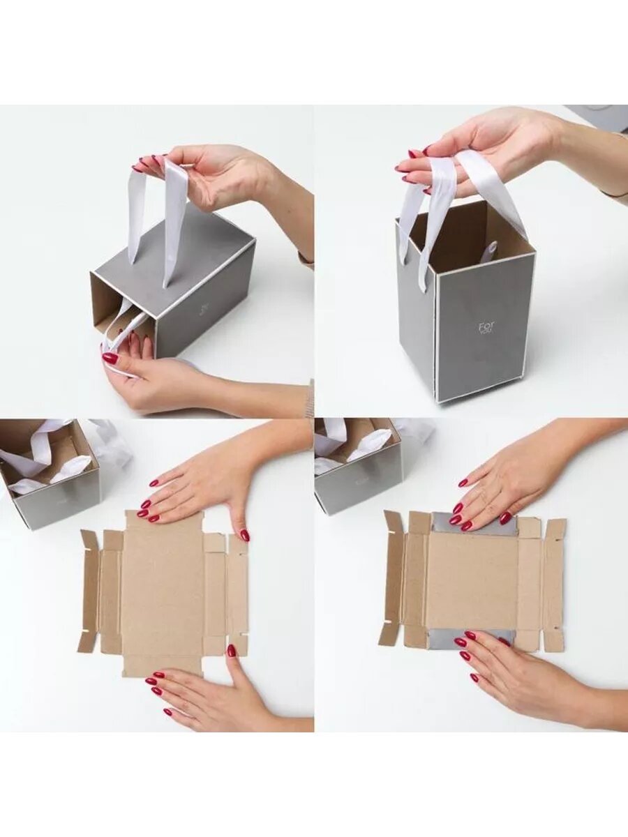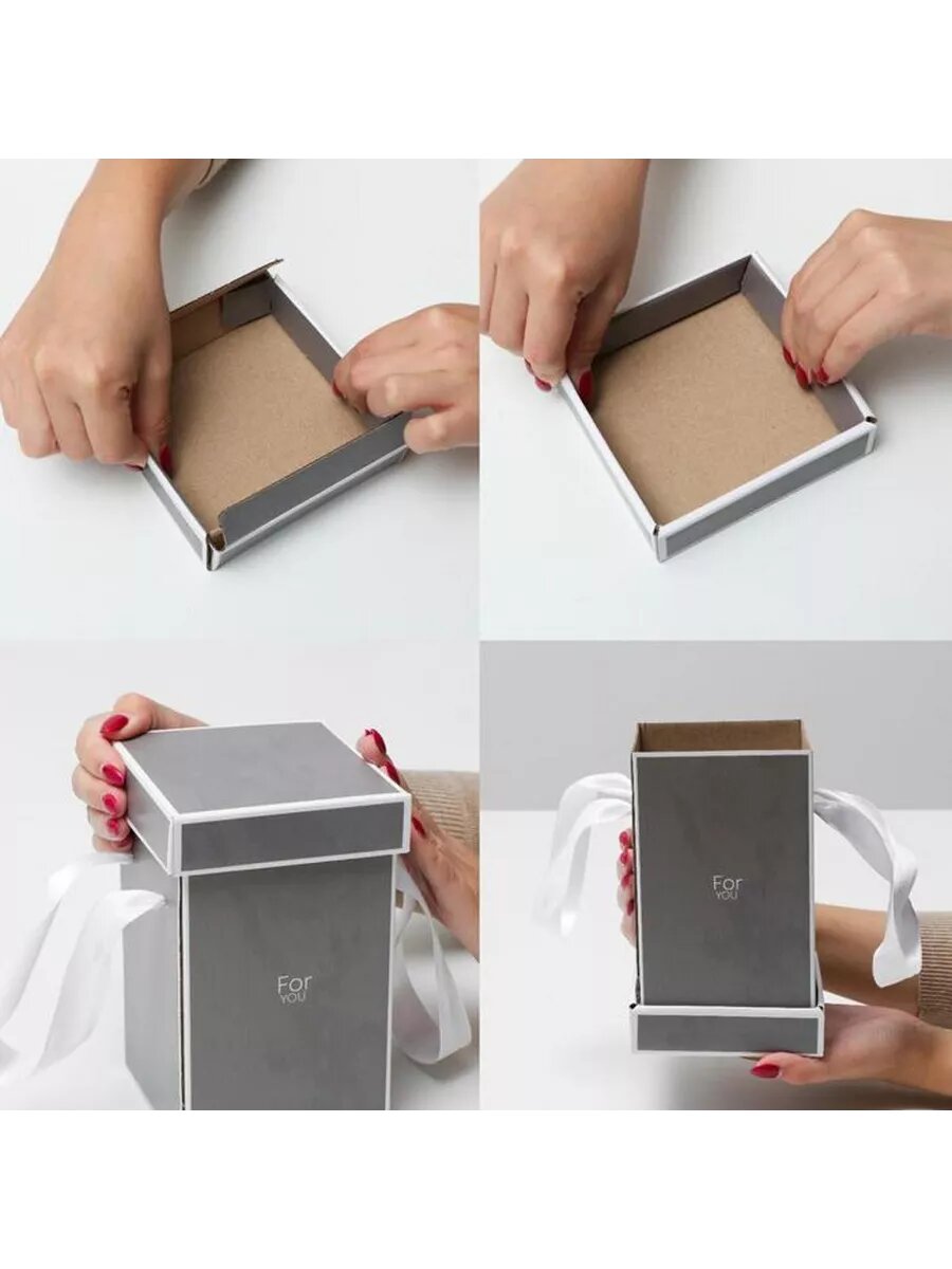 Упаковка для подарков: крафтовая коробка 22х17х10 см с бумажным наполнителем и атласной лентой
