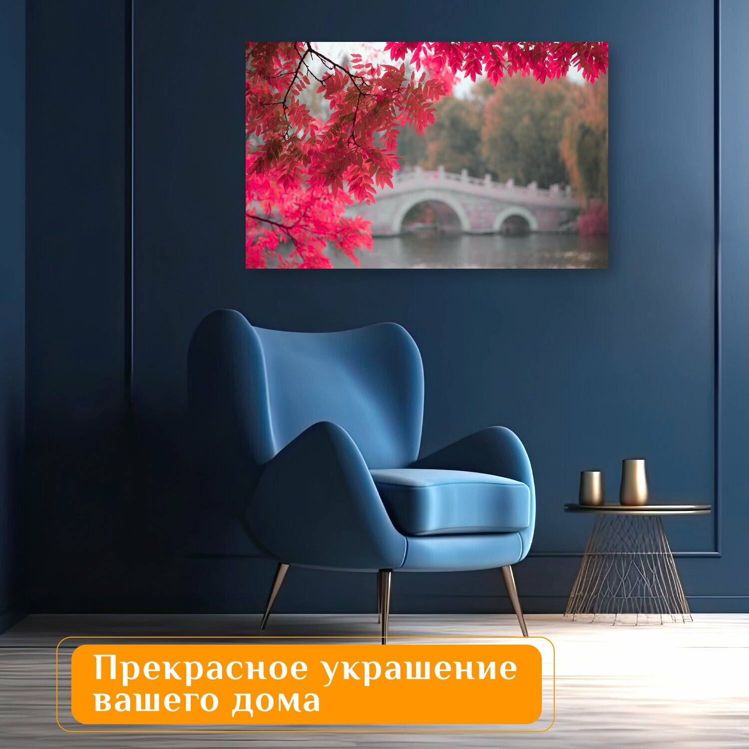 Картина на холсте "Листья, красные листья, осенний сезон" на подрамнике 120х75 см. для интерьера информация: