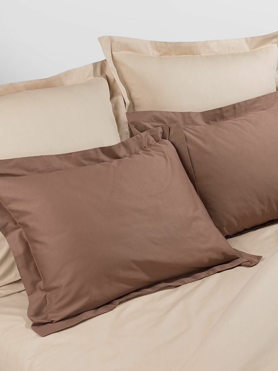 1.5 спальное постельное белье однотонное из сатина коричневое с бежевым