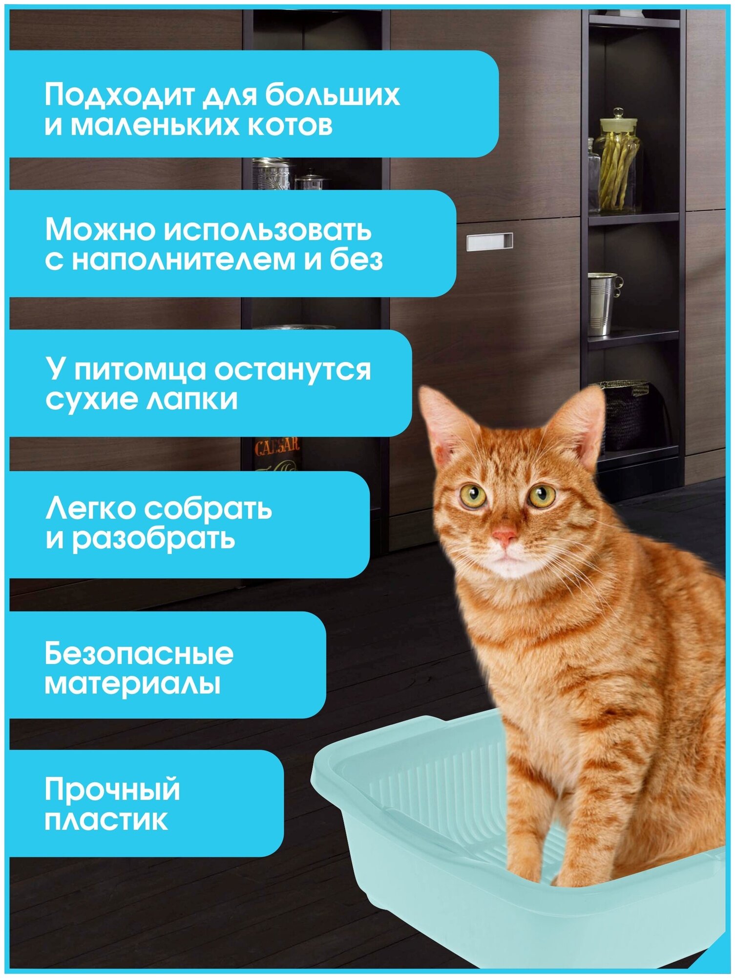 Лоток Туалет для кошек большой с сеткой , ментоловый, 36х49х12,5 см