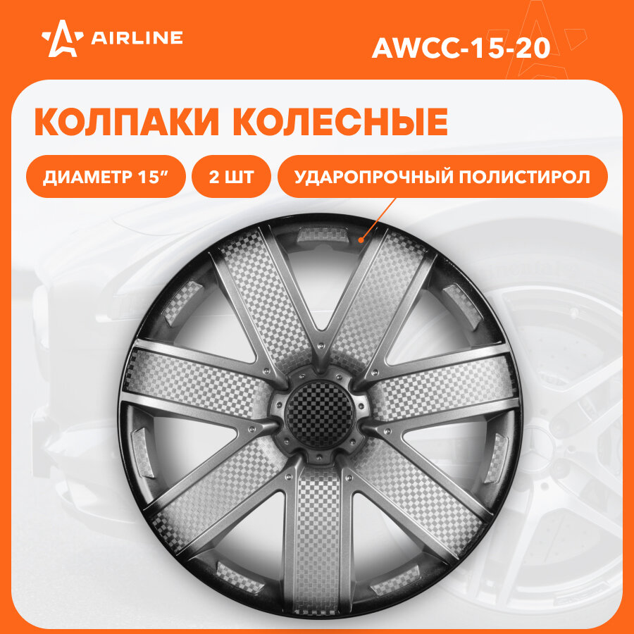 AIRLINE Колпак колеса декоративный R-15 "Гелакси +" серебристо-черный карбон (к-т 2шт) (AWCC-15-20)