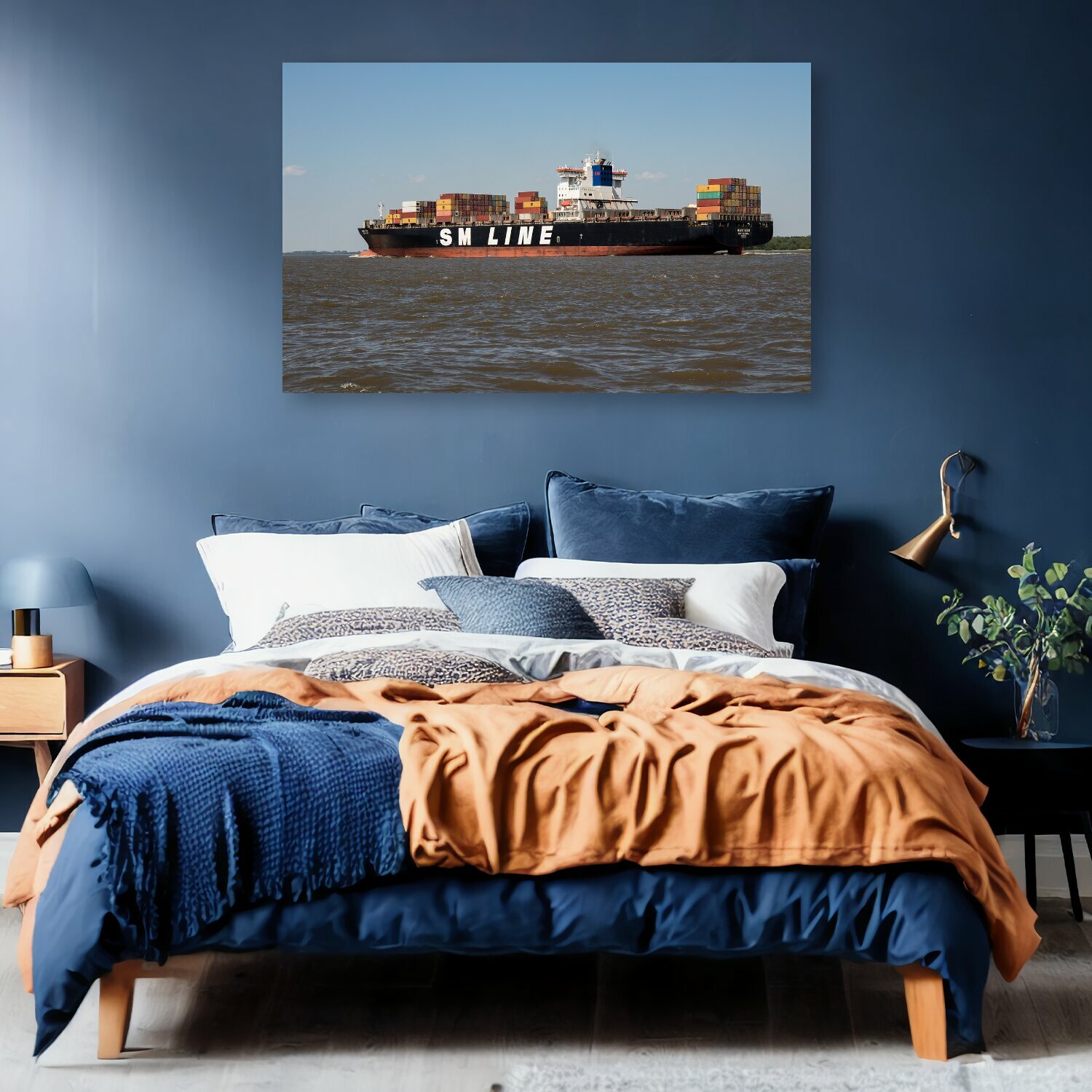 10 цен на Картина на холсте "Контейнеровоз, грузовое судно, транспорт" на подрамнике 120х75 см. для интерьера