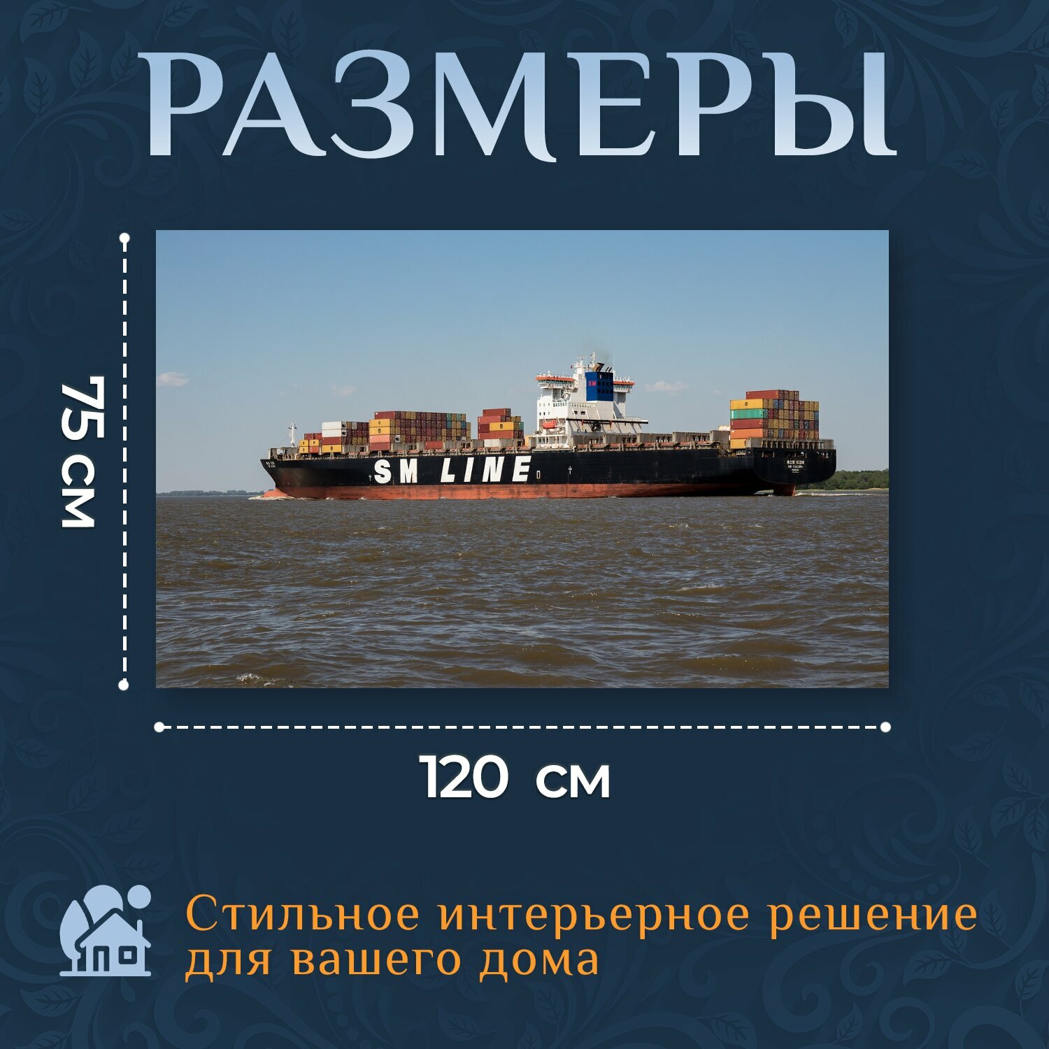 Картина на холсте "Контейнеровоз, грузовое судно, транспорт" на подрамнике 120х75 см. для интерьера информация: