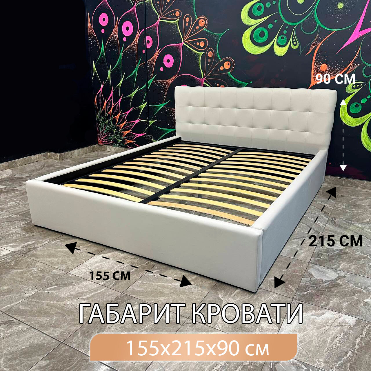 Кровать 140х200 с подъемным механизмом, бельевым ящиком двуспальная с ортопедическим основанием белая информация:
