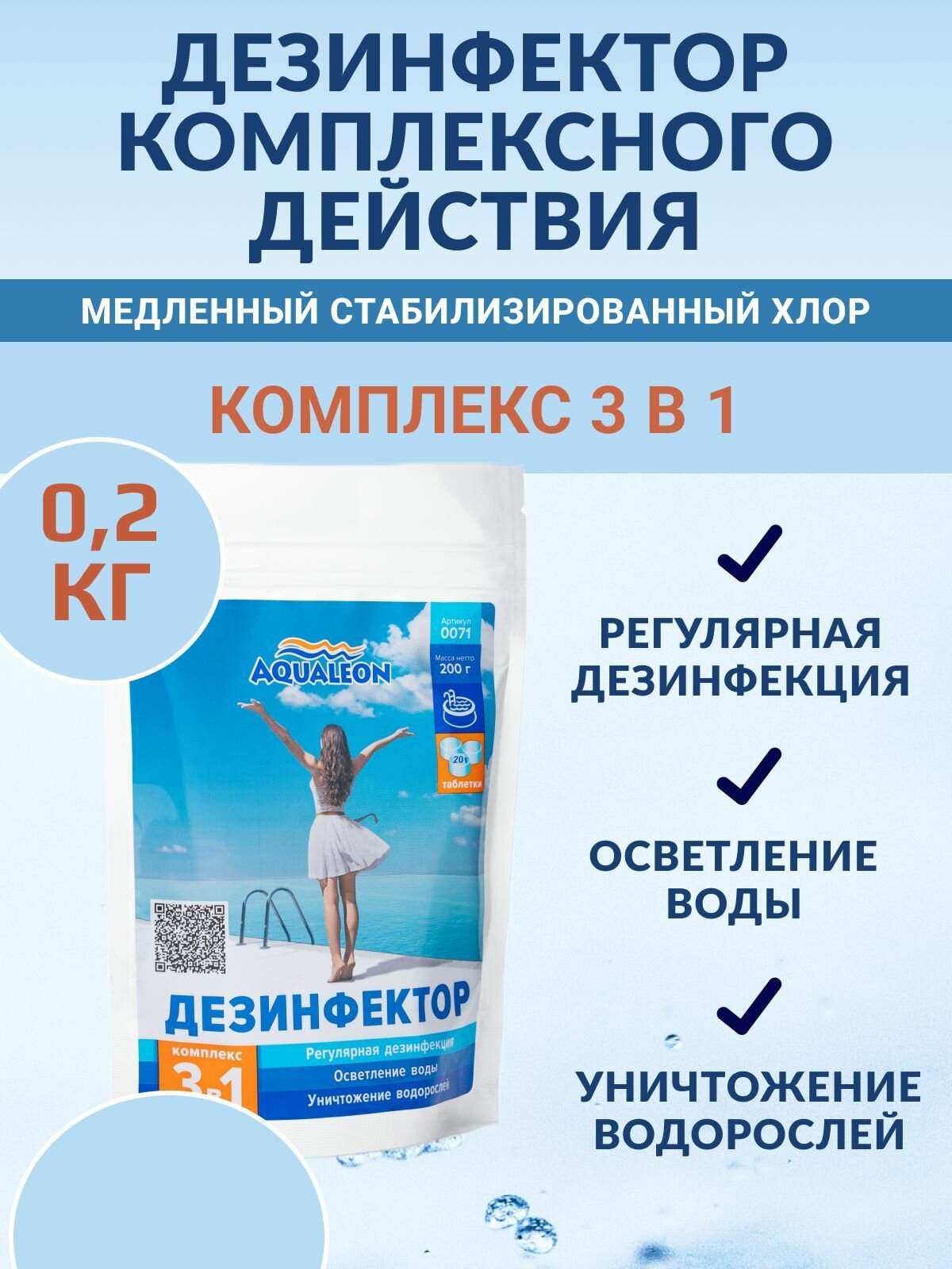 Дезинфектор Aqualeon медленный хлор 3 в 1 в таблетках по 20 гр., 0,2 кг 538 ₽