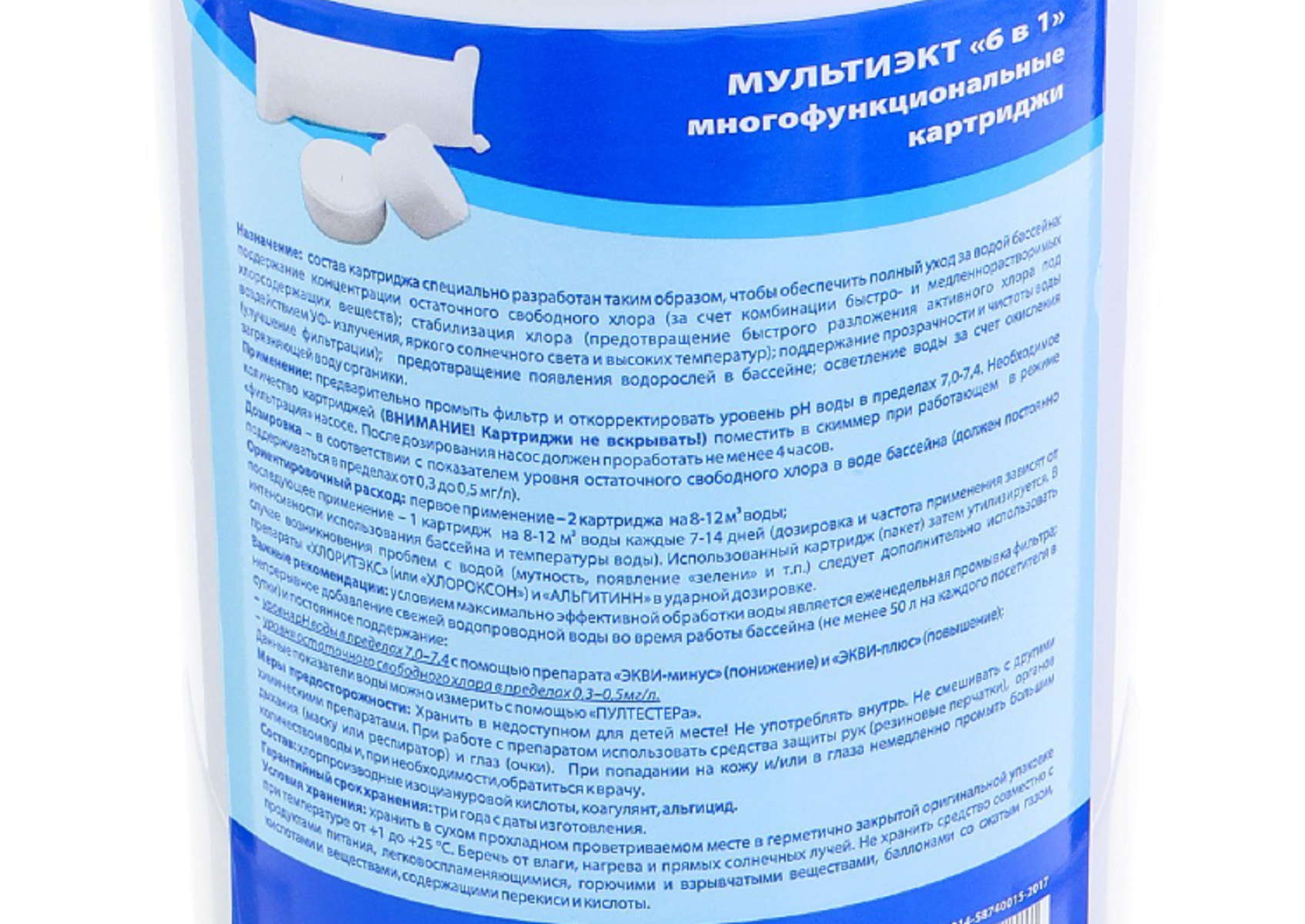 Мультиэкт 6в1, 0.8 кг., таблетки в картриджах, медленно растворимый хлор, химия для бассейна