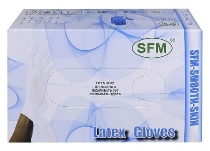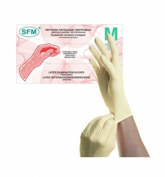 Перчатки смотровые SFM Latex опудренные, 50 пар, размер: M, цвет: белый