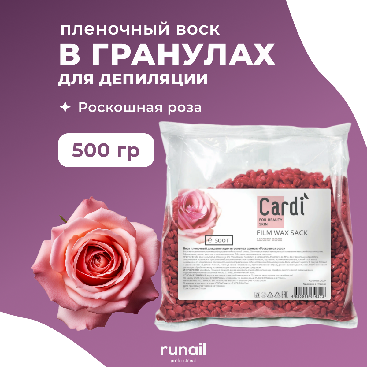 RUNAIL, CARDI, Воск пленочный для депиляции в гранулах, Роскошная роза, 500 г