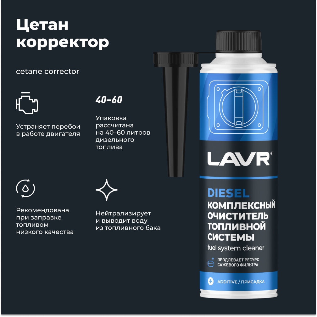 LAVR Комплексный очиститель топливной системы, присадка в дизельное топливо 310мл (Ln2124)