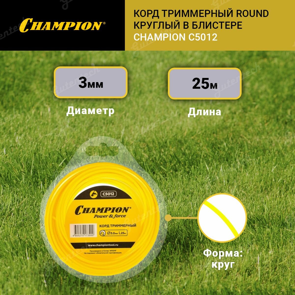 Корд триммерный Round 3.0 мм х 25 м Champion C5012