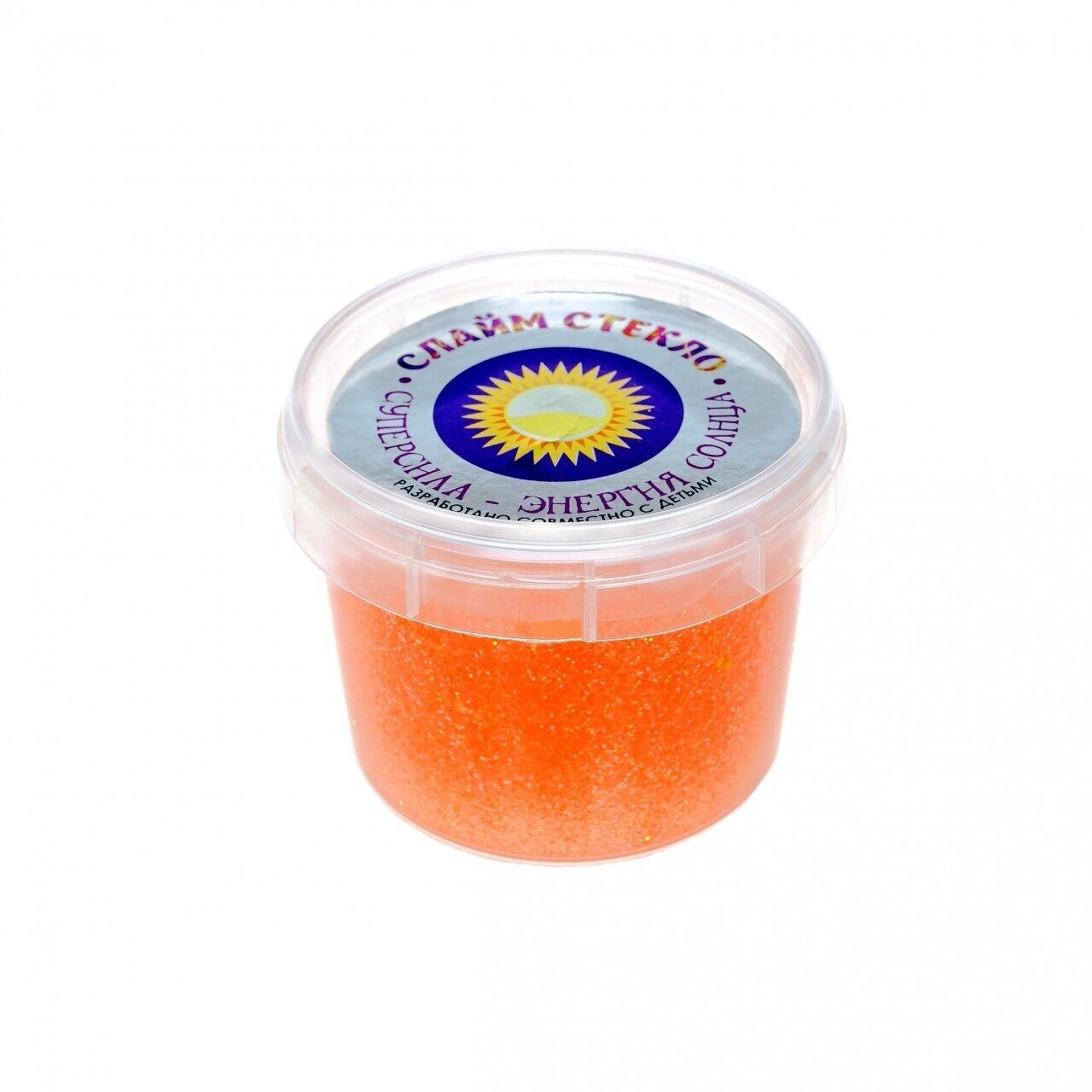 Слайм Стекло. Лизун. Лепа (100гр, с оранжевыми неоновыми блестками) (t замерзания -15°C) (в банке) информация: