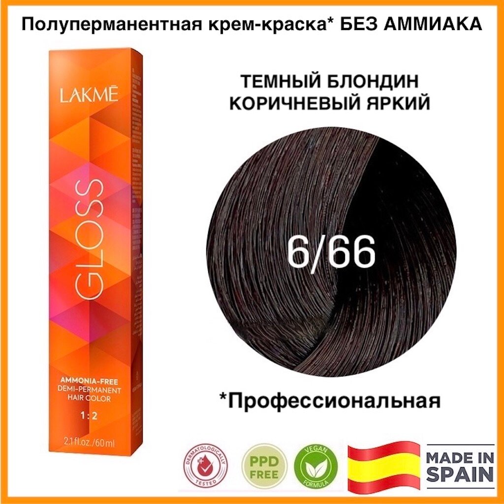 Lakme Gloss 6/66 Темный блондин коричневый яркий информация: