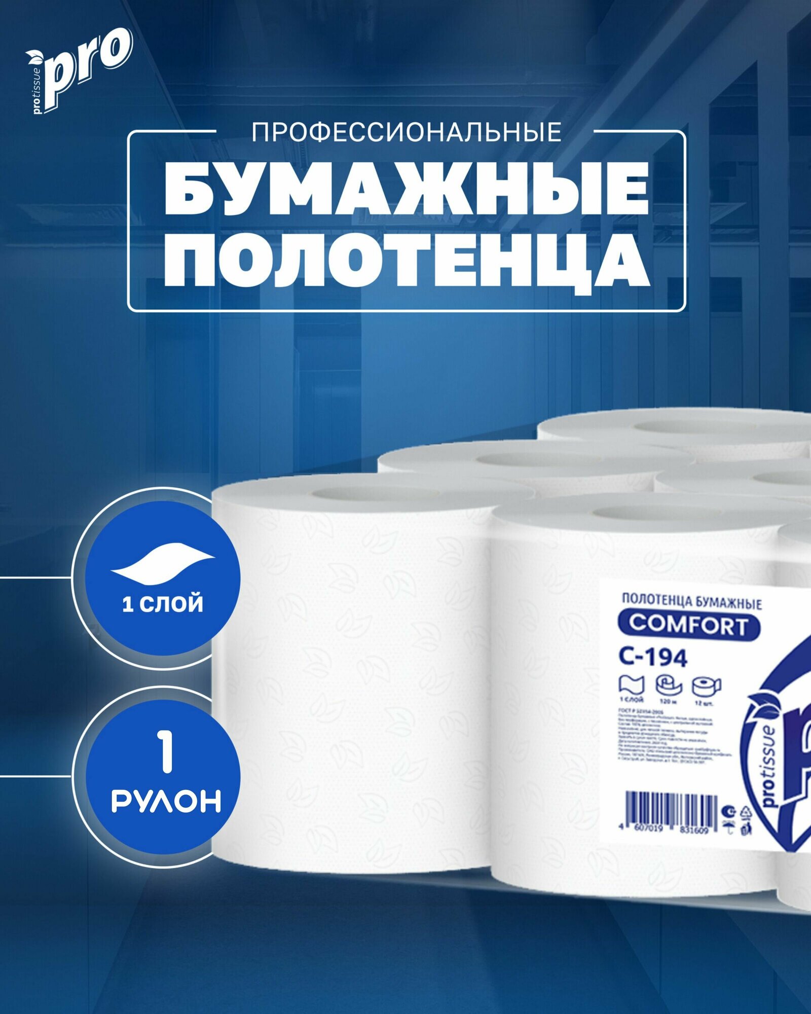 Полотенца бумажные PROtissue Comfort C194 однослойные, с центральной вытяжкой, 1 упаковка - 12 рулонов по 120 метров