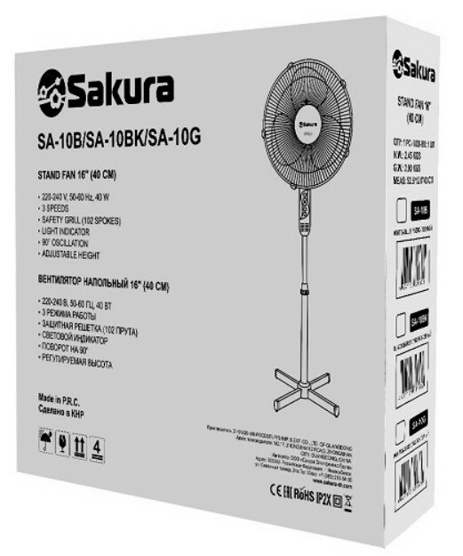 Вентилятор напольный SAKURA SA-10B белый/голубой информация: