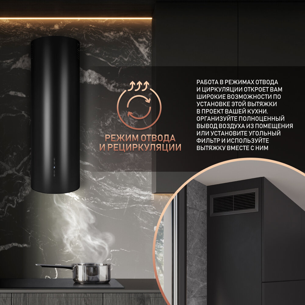 Кухонная вытяжка Weissgauff Tubus 90 Black Edition информация: