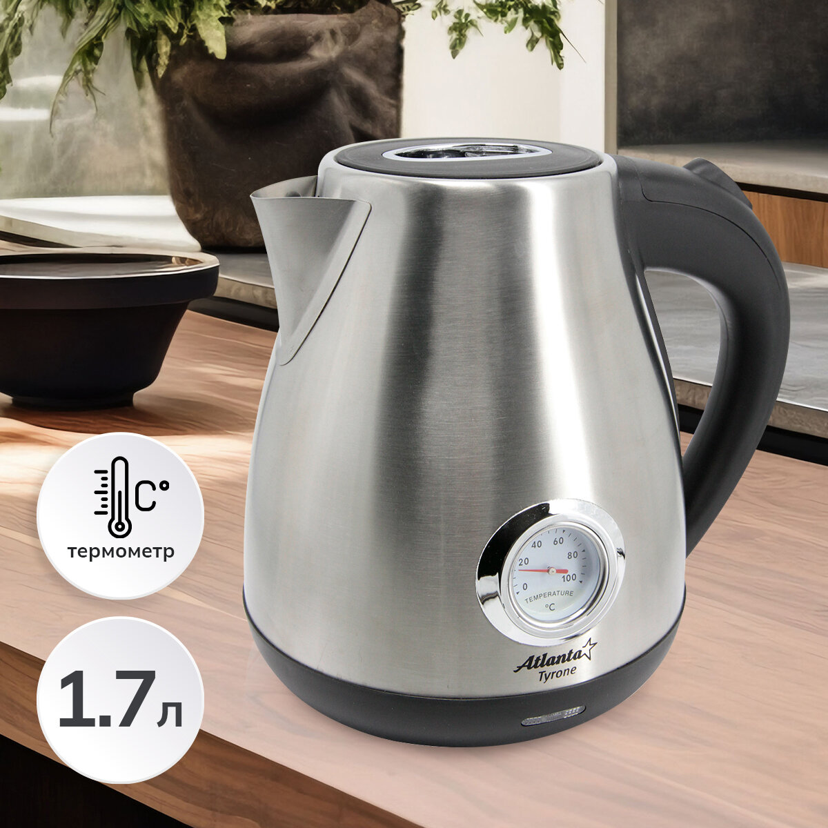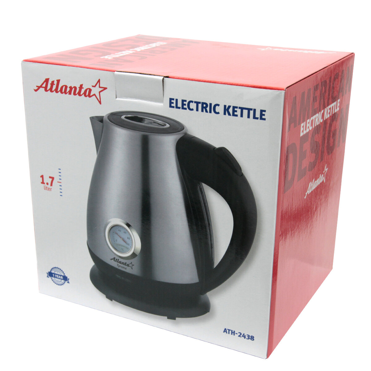 Чайник металлический электрический Atlanta ATH-2438 (black) 1,7 литра, термометр воды