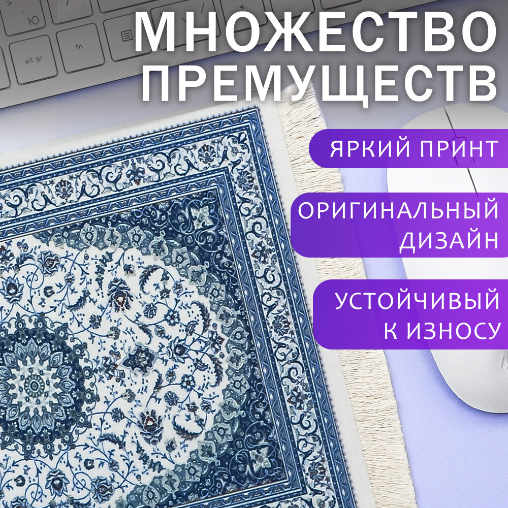Коврик компьютерный для мыши Персидский ковер синий 27х18 см, игровой для ПК, подарочный информация: