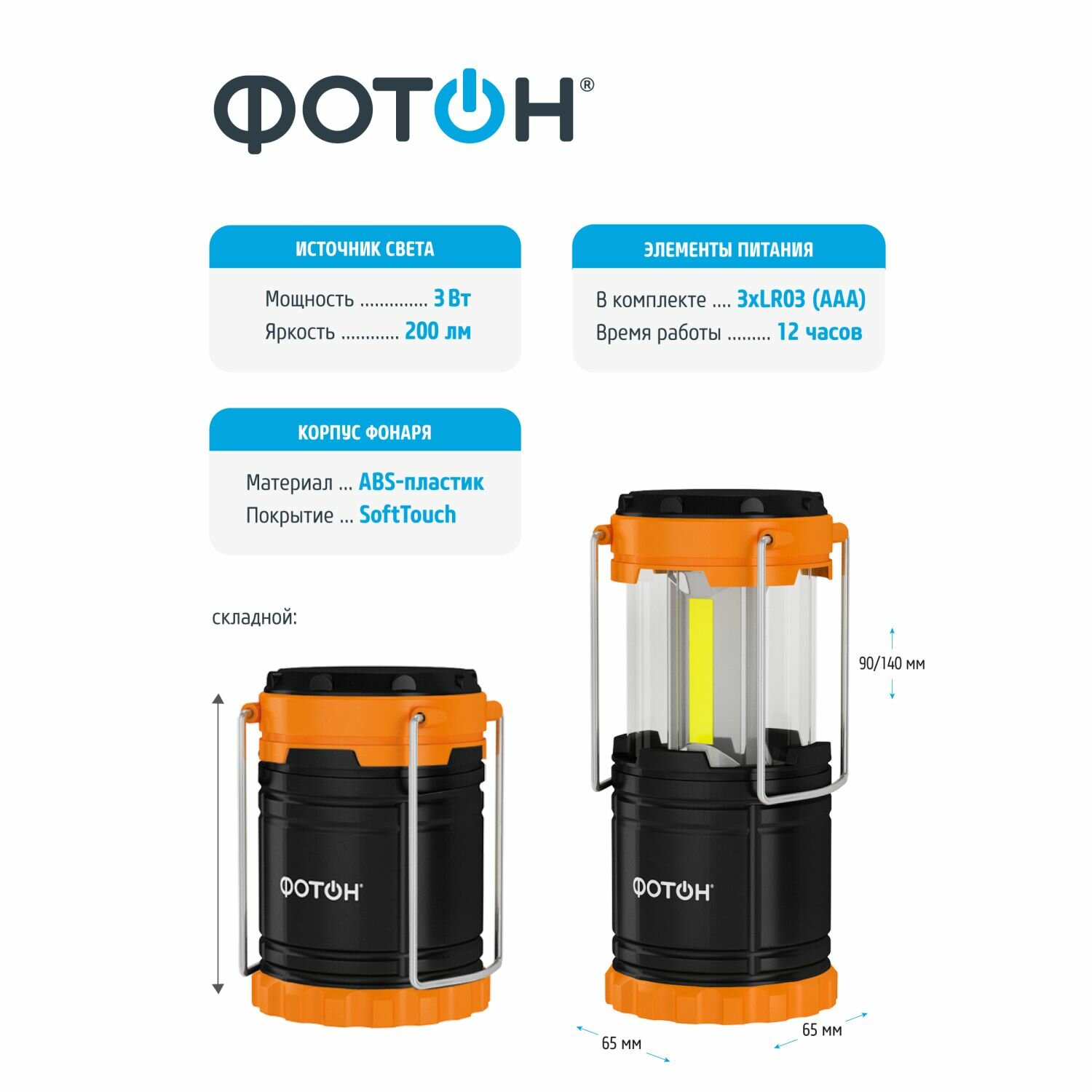 Фонарь кемпинговый светодиодный фотон С-450 (3*LR03 в комплекте) 23064 информация: