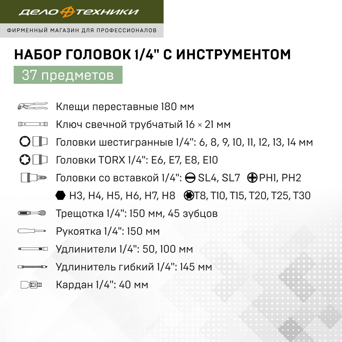 Набор головок 1/4" (37 предметов) "Дело Техники" (с инструментом)