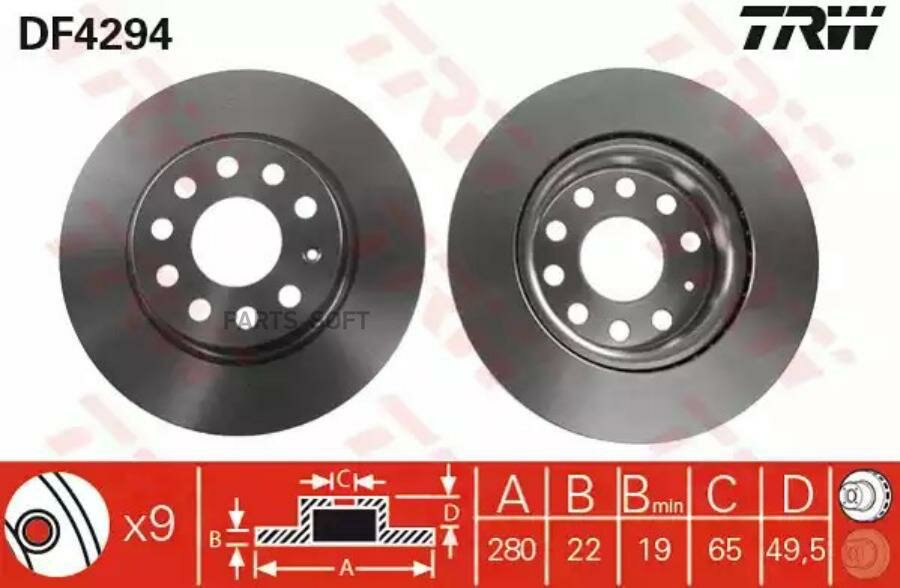 Диск тормозной для автомобиля Audi Volkswagen Seat, TRW DF4294 (2 шт.)