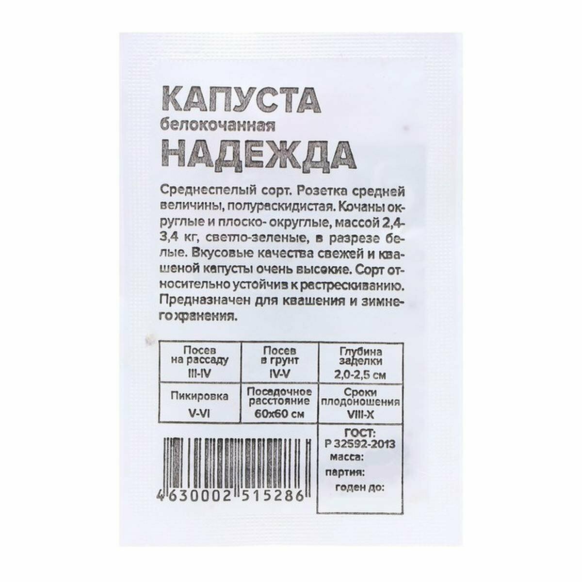 Семена Капуста "Надежда", 0,3 гр., 9 упак. информация:
