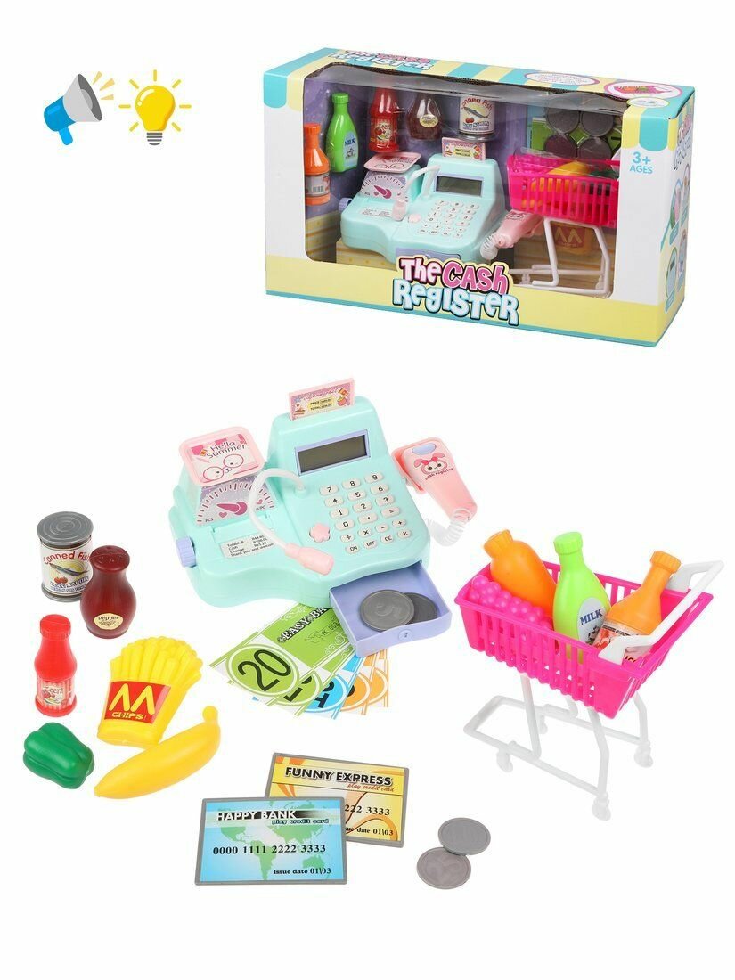 Касса детская магазин с тележкой со светом и звуком 26 предметов