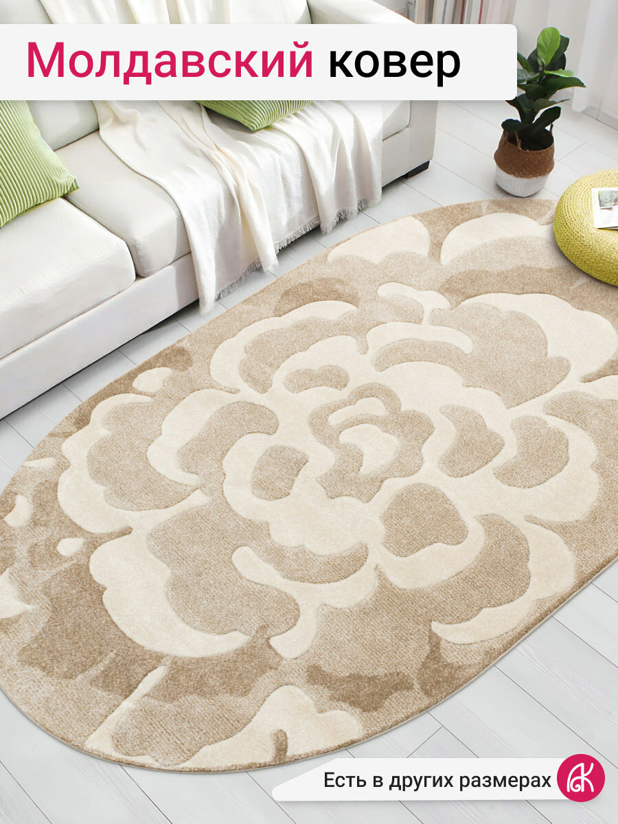 Ковер на пол 0,8 на 1,5 м в спальню, гостиную, бежевый Soho 1952-15055 овальный