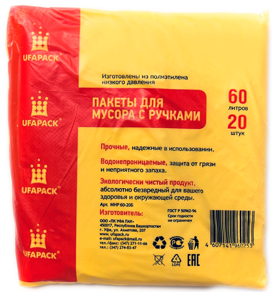 UFAPACK Пакеты д/мусора "Уфа ПАК" С ручками 60 л. 20 шт. белые М0253 информация: