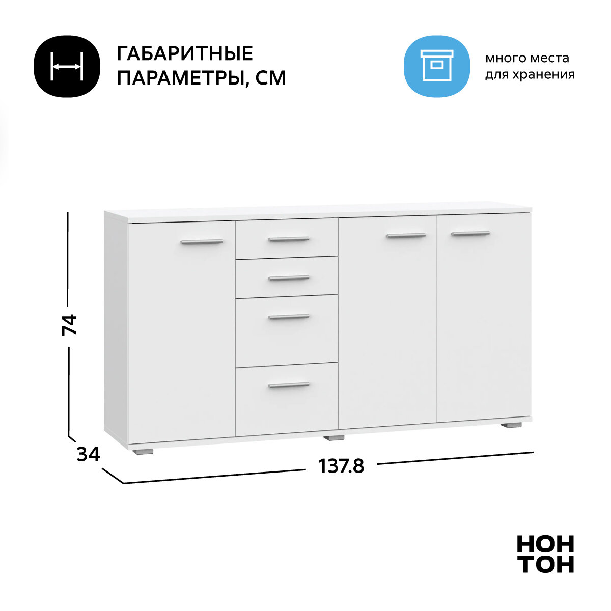 10 цен на Комод НК-мебель FUN КД-4, 4 ящика, 3 дверцы, ЛДСП, 137,8 х74 х 34 см, Белый 71336953