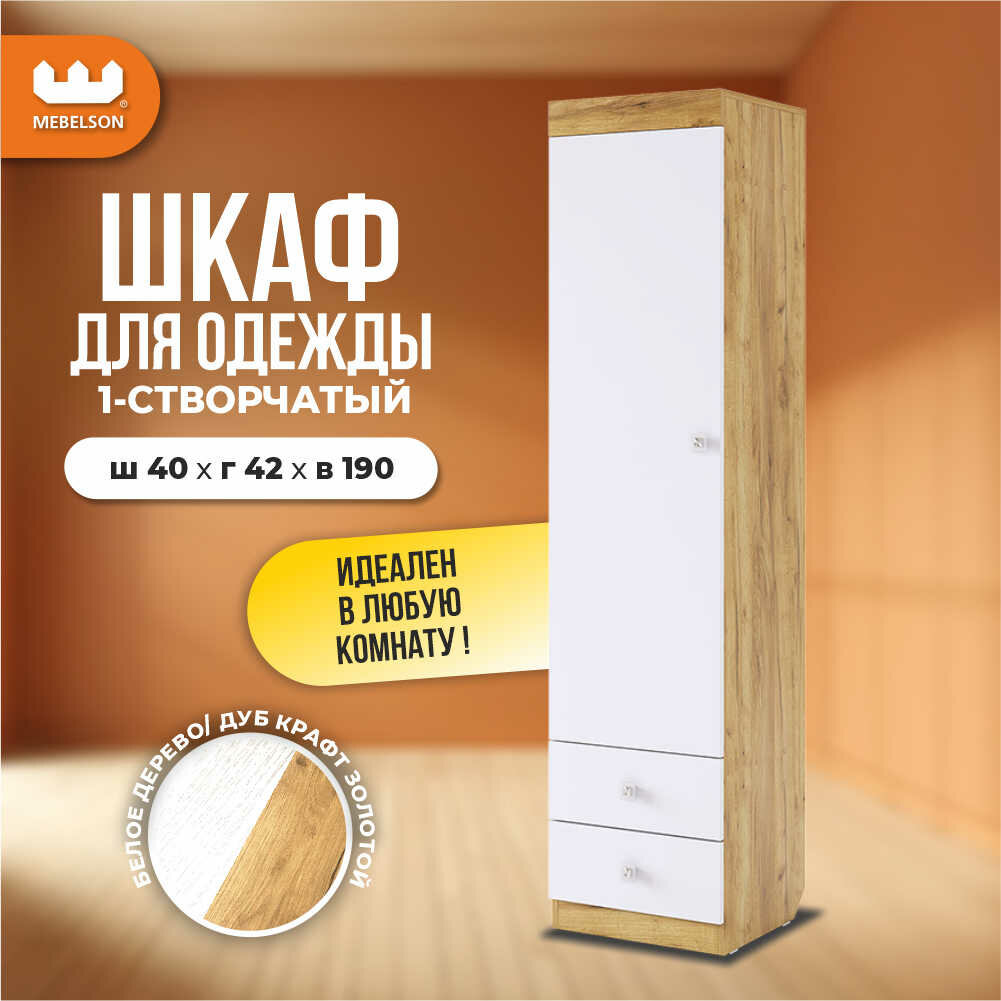 10 цен на Шкаф однодверный (пенал) "Форсаж", распашной с ящиками, дуб крафт золотой/белый, 40*42*189,5 см., Mebelson