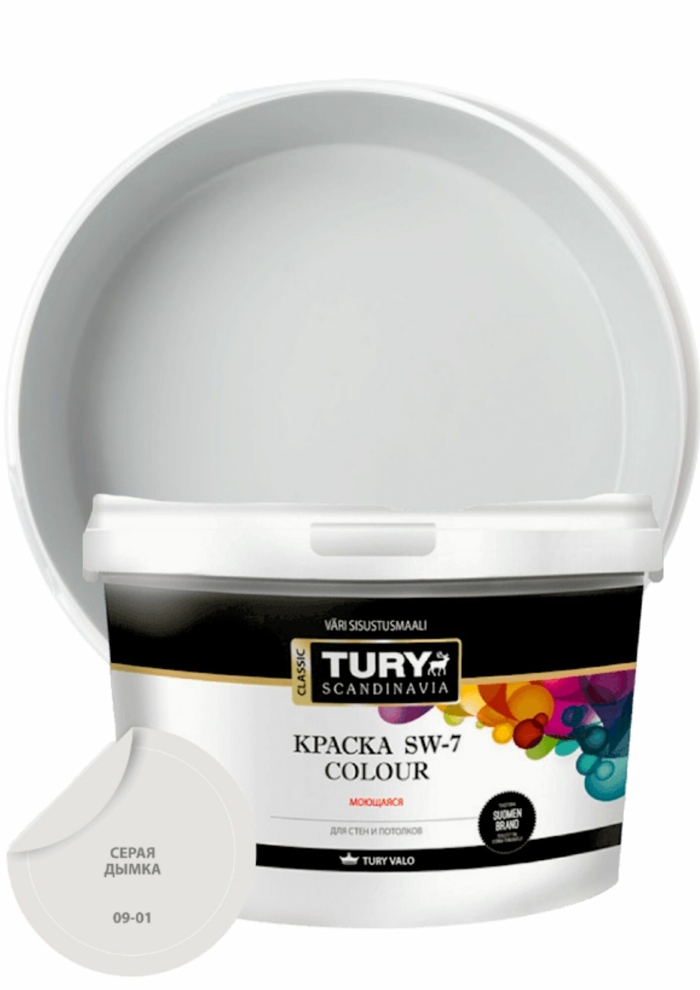 Краска акриловая tury sw-7 colour для стен и потолков моющаяся 0,4кг серая дымка, арт.крвдsw70,4сд