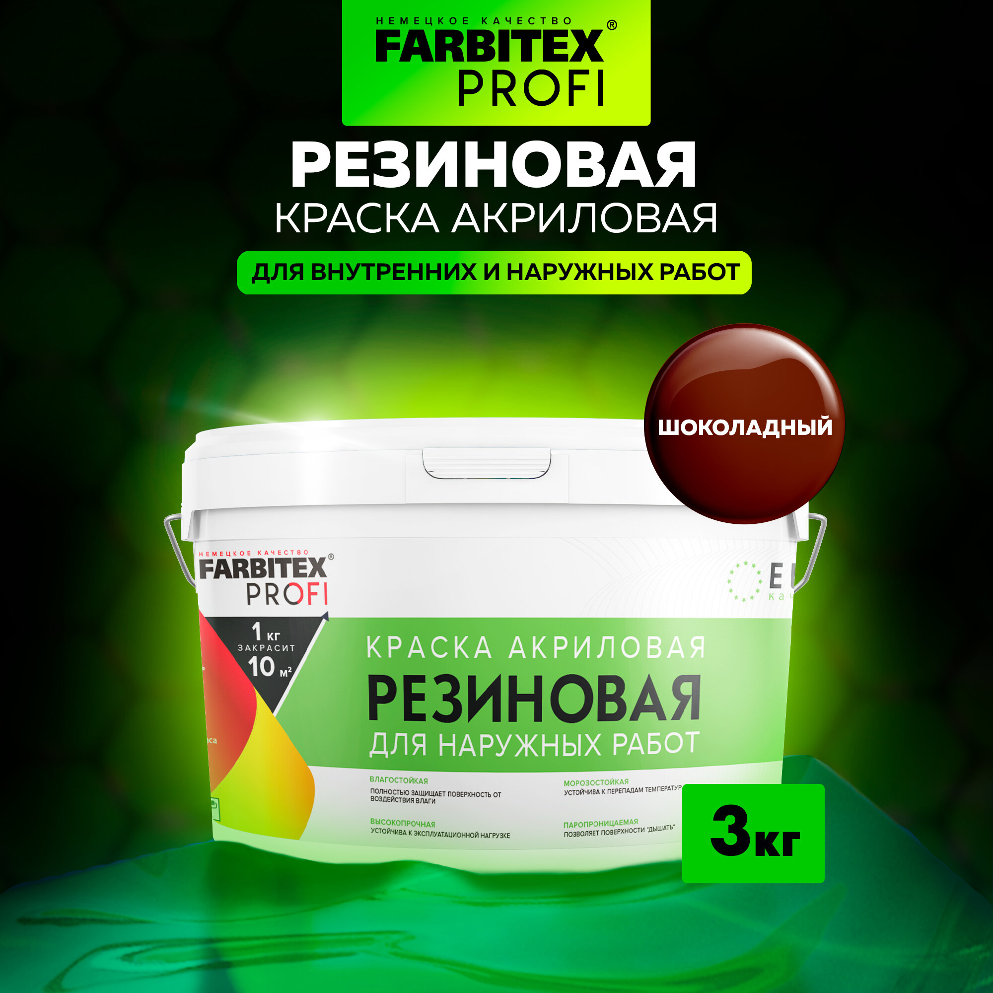 Краска акриловая резиновая FARBITEX профи шоколадный 3 кг информация: