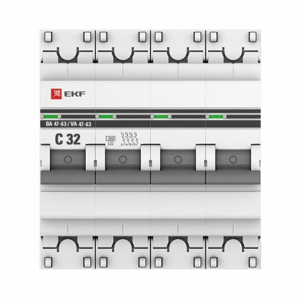 Модульный автоматический выключатель ВА 47-63 PROxima 4 полюса, 32А, х-ка C | код. mcb4763-4-32C-pro | EKF ( 1шт. )