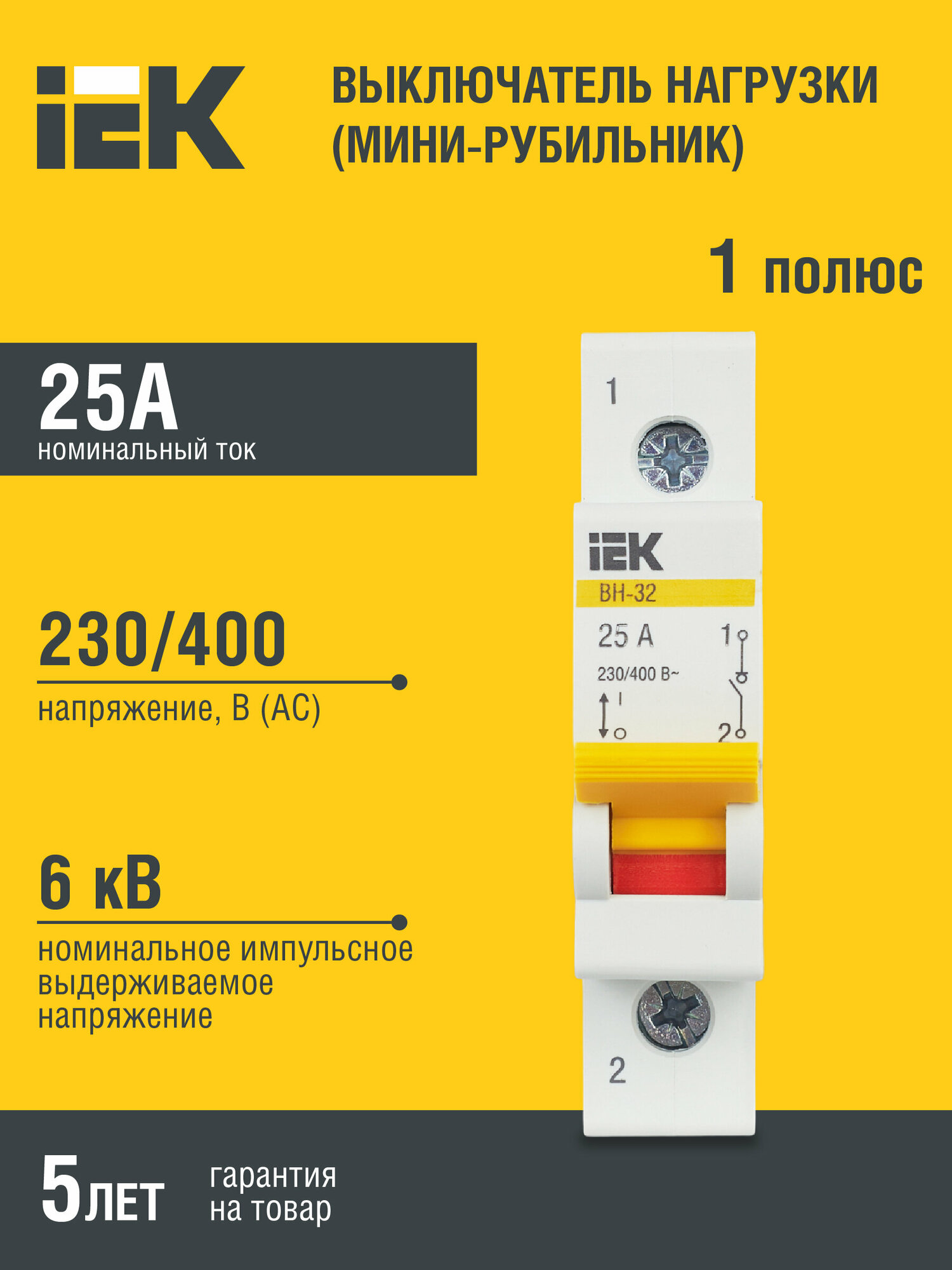 Выключатель нагрузки (минирубильник) ВН-32 1Р 25А ИЭК информация: