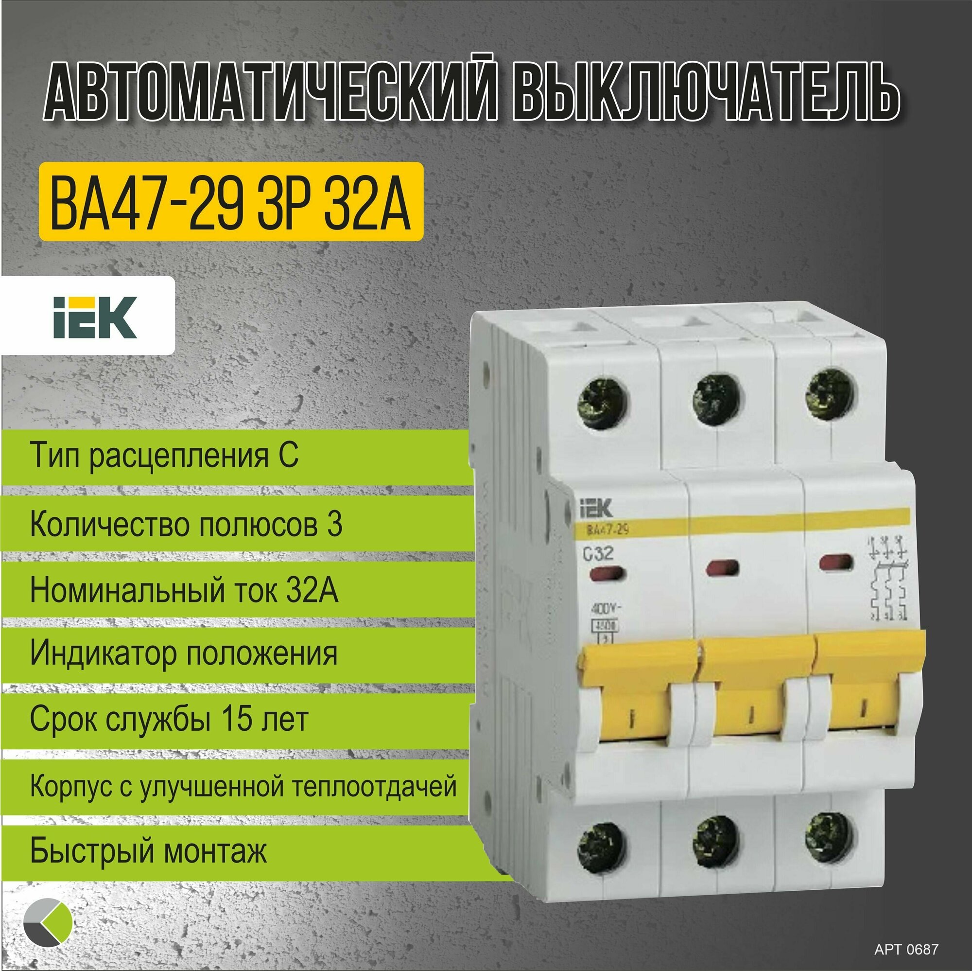 Автоматический выключатель ВА47-29 тип С 4,5кА 3п 32А IEK автомат трехфазный 32а информация: